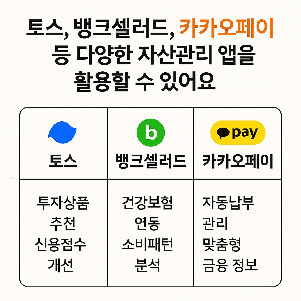 현재 마이데이터 기반 자산관리 앱은 토스, 뱅크샐러드, 카카오페이 등 다양한 금융 플랫폼에서 제공되고 있어요. 각 앱마다 기능과 특화 서비스가 달라서 자신에게 맞는 앱을 선택하는 것이 중요해요.
